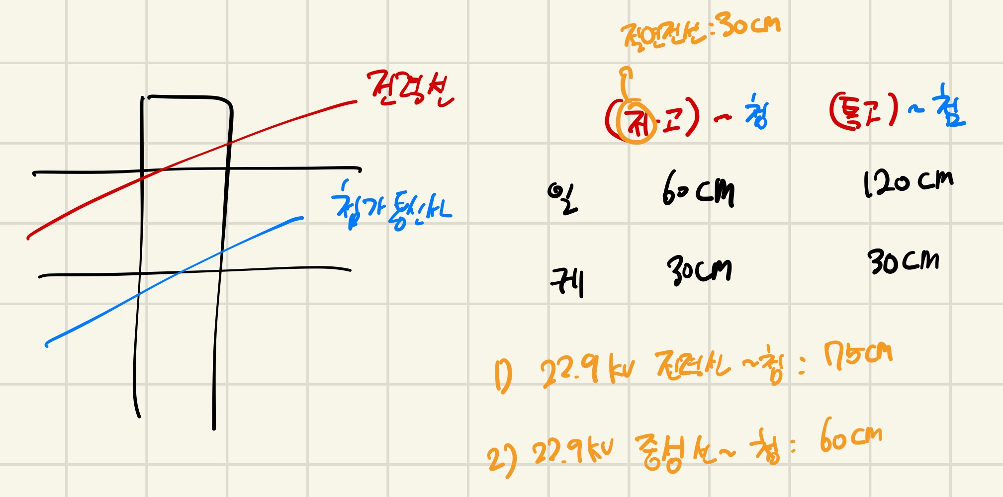 전선과 수목(나무나 뭐 그런거)와의 이격거리: 0.3m