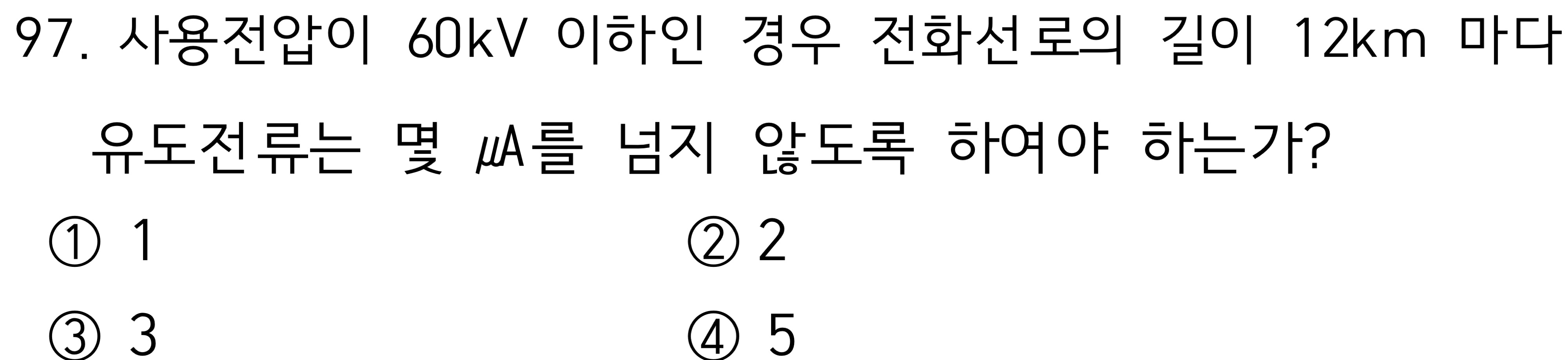 문제에서는 60kV이하이고 길이가 12km라고 했으니 정답은 2uA 2번입니다